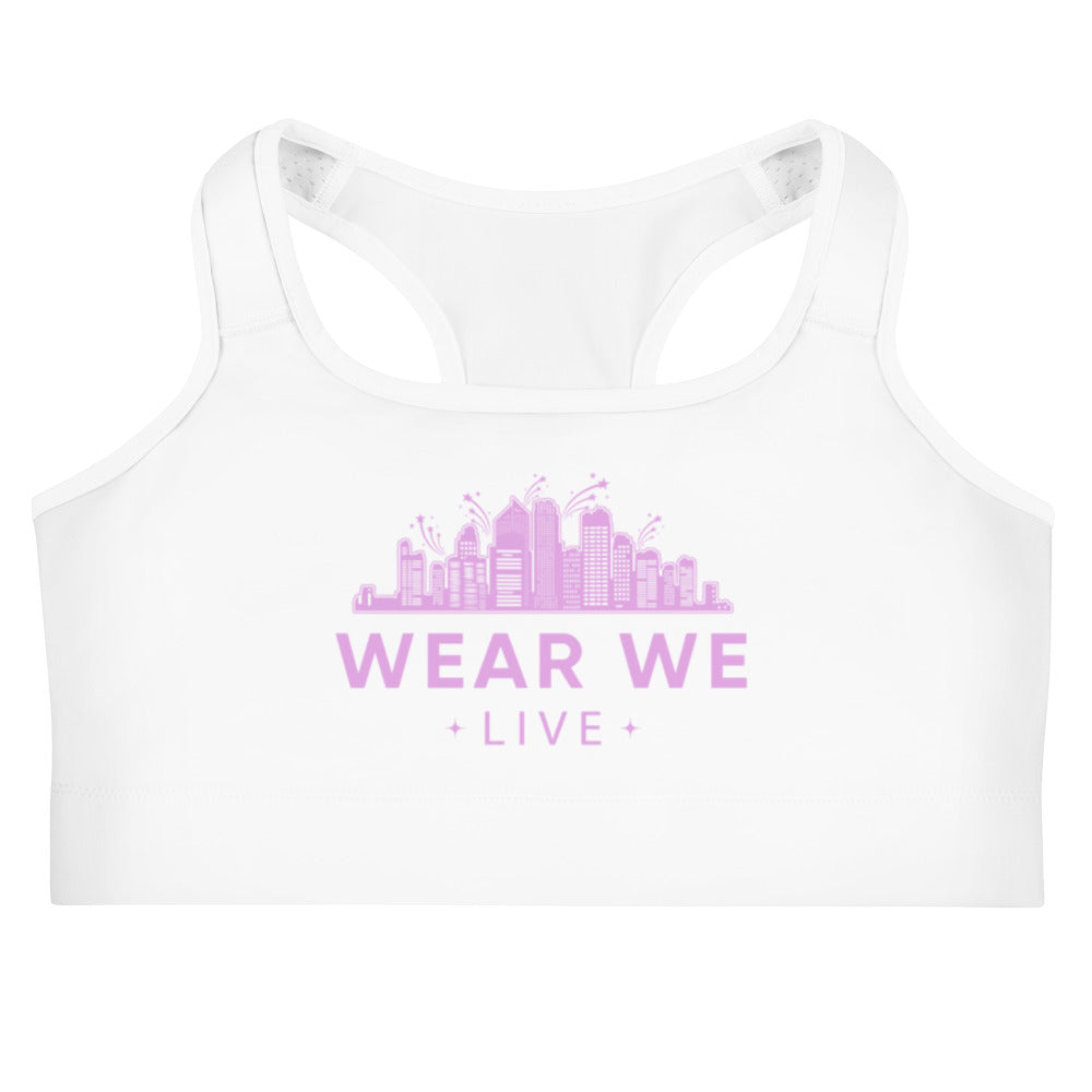 This cool white sports bra with a pop of violet is made from fabric that helps keep you dry during your light and moderate workouts. It has extra support in the straps, a double layer in the front, and a wide elastic band for good support.