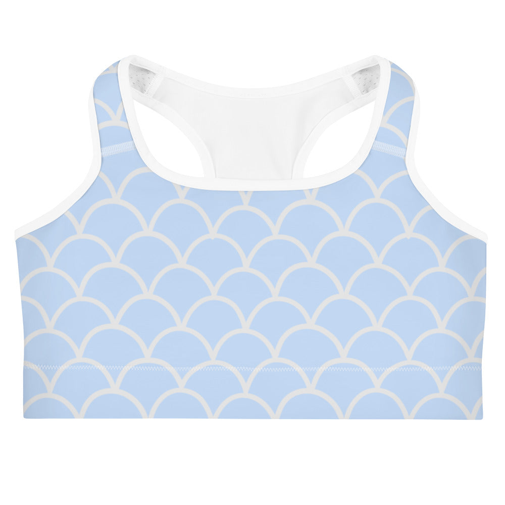 This gorgeous pastel blue sports bra is made from moisture-wicking material that stays dry during low and medium intensity workouts. The bra has support material in the shoulder straps, double layer front, and a wide elastic band to ensure constant support.
