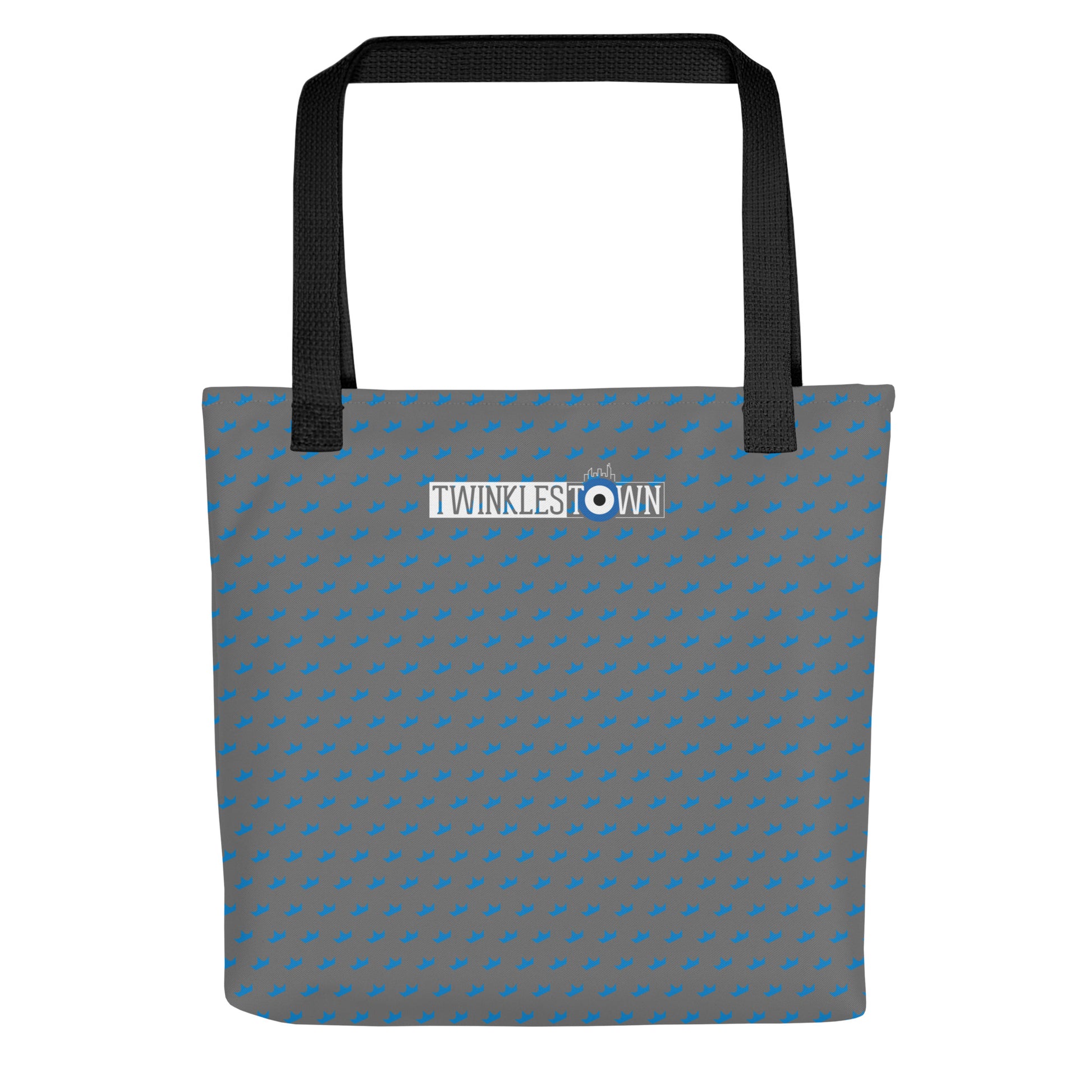 A big and fashionable tote bag to carry all your stuff, with blue crown designs for extra style.