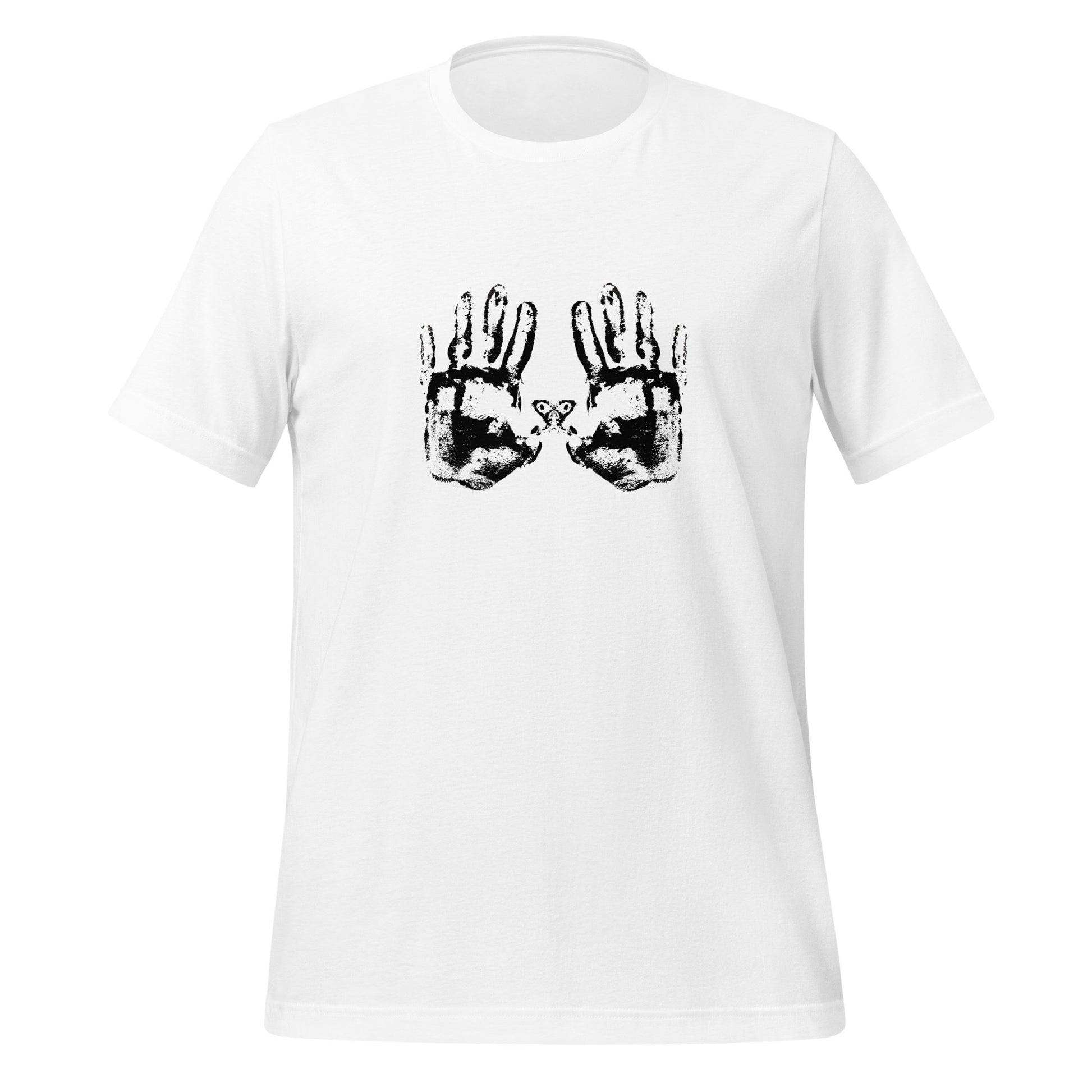 Experience ultimate comfort and style in this white hoodie with two hand prints. Soft, lightweight, and stretchy, it's comfortable and flattering for all. Perfect for cooler evenings, this hoodie elevates your loungewear game effortlessly.